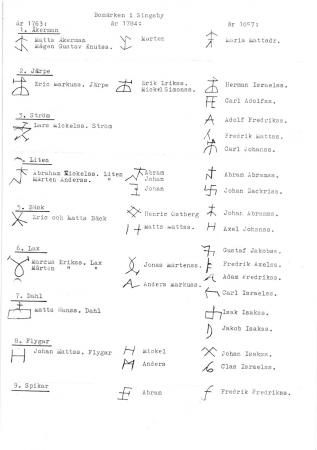 En del av gamla bomärken från Singsby