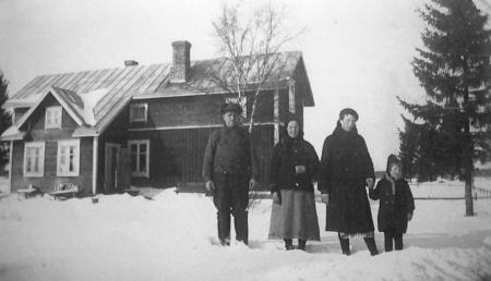 Maria Sofia (Högs Mari) född Kalfholm (1867-1858) från Norra Jungsund och hennes man Alfred Mattsson Åkerman, ”Hansos Alfred”, nu också ”Abbis Alfred” (1871-1954), Övertog en del av Ström hemman efter Maria Sofias föräldrar. Flyttades efter nyskiftet till Maren. Här framför gården tillsammans med sonhustrun Jenny Alice född Kalfholm (1909-1990) från Norra Jungsund och hennes dotter Hedvig Viola* (1935-1945)