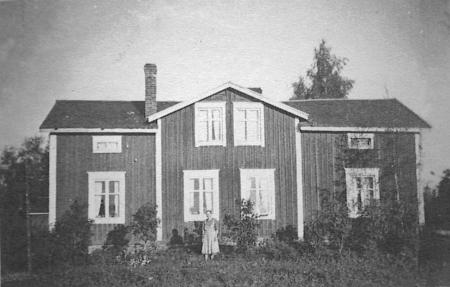 Edvard och Ester Åkermans gård, numera ombyggd av sonen Sven. Består delvis av en av Åkermans gårdar som flyttades från nuvarande hembygdsföreningens tomt vid nyskiftet. Södra delen tillbyggd. Där bodde Svens farfar Kristian och farmor Fredrika. Fähusdelen av ekonomiebyggnaden utgörs av en del av uthuset som stod bakom Hf:s lokal. Damen framför gården är Ester Åkerman.