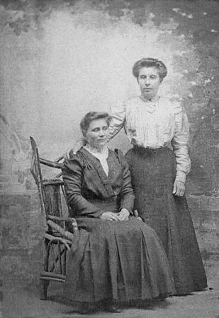 Stående: Irene Elisabeth Hermansdotter (Rikas Irene) Dahl, (1891-dog troligen före 1948). Till Amerika 1909. Fotot taget ungefär 1915 i Amerika.