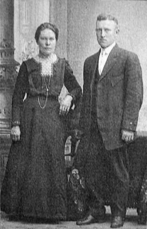 Johannes (Jan) Eriksson Smeds, (1880- 1947) från Nojärv i Pörtom. Johannes är upphovet till benämningen "Janas back". Här med hustrun Maria, född Eurlin (1877-1951) i Koskö, tidigare gift med Johannes Isaksson Lax (1876-1901). Fotot från ~1910. De var Elin Hägglunds föräldrar.
