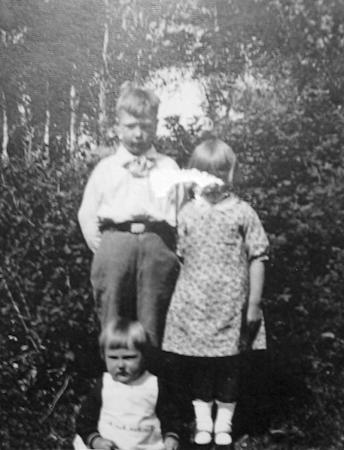 Barnen vid Adamas en sommar på 1930-talet. Stig-Erik (Stig) Ernfrid (1926-2006), Gunvor Alice (1929-2023) och Paul Mikael (1932-2023).