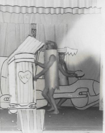 Fred Flinta och Barney Granit i resplaner. Revyn "Vår i byn" 1962.