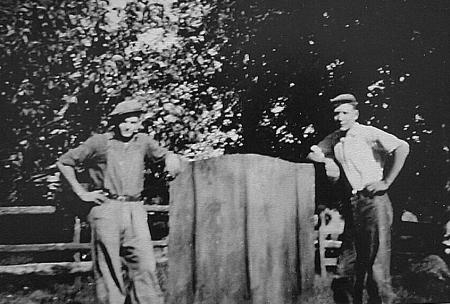 Alvar Lithén och Börje Håkans snickrar ihop en talarstol inför föreningens 25-årsjubileum 1949