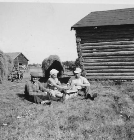 Hugo, Adele och Rurik Lund har kaffepaus.