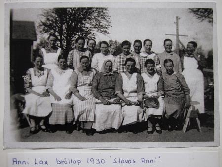 Kockar och uppasserskor vid Anni Lax’ och Evert Bäcks bröllop 1928. (fel årtal på fotografiet).