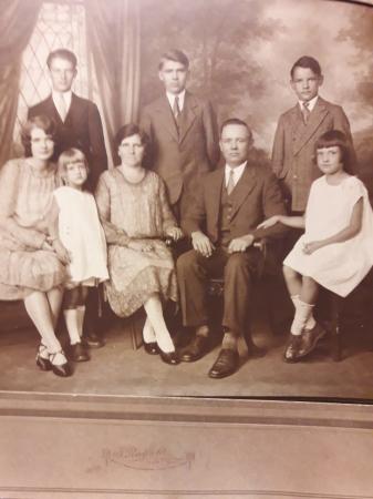 Barnen från vänster medsols: Edith Mathilda (1903-), gift Granfors, John Henry (1908-), Edvard Alfons (1910-), John Alfred (1913-1999), Ruth E. (1920-), gift Christiansen, Gladys M. (1922-2005), gift Chevrolet.