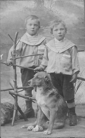 Herman Edvin Lax (1906-1996) och Hugo Lax (1907-1971) med hunden Jäger.