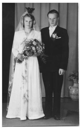 Gunni Alice Lithén (1927-2000) och Karl Vilhelm* Strandberg (1925-2009) från Voitby gifter sig 1949.