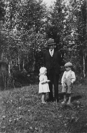 Johan Albert* Åkerman (1906-1940) med barnen Hedvig Viola* (1935-1945) och Bertel Emanuel (1933-2022).