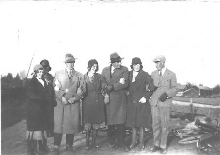 Från vänster: Valdine Hjerpe, Oline och Fridolf Hjerpe, Sylvia Hjerpe, okänd, okänd, Abbis Erik Åkerman