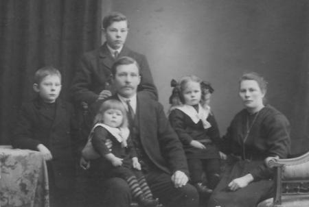 Barnen Karl Hugo* (1912-1941), Johan Arvid* (1903-1974) född i Chrystal Falls, Michigan, USA, Gustav Vilhelm (1919-1992) och Liljen Engele* (1917-1997) gift Holm.