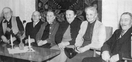 Singsby folkskolas 70-årsjubiléum 1954. Från vänster: Betty Back, Abraham Alfred Backman (Gerby), Ida Sabel,