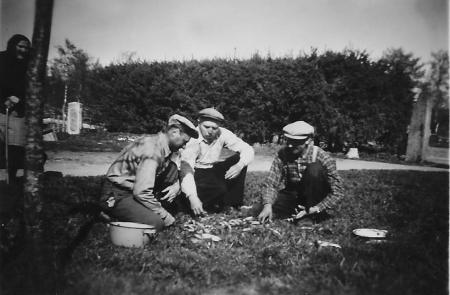 Paul Sabel, Hilding Wikberg och Einar Ström delar fångsten vis Sabels.