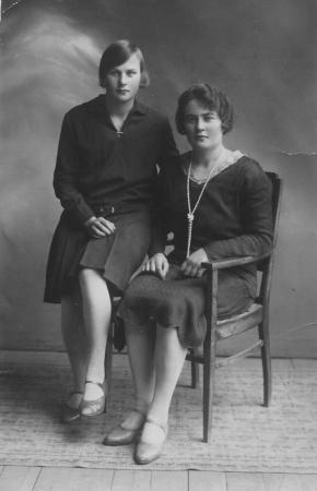 Systrarna Anna Oline* (i stolen) (1909-1989) och Ingrid Alvina Hjerpe (1914-1982)