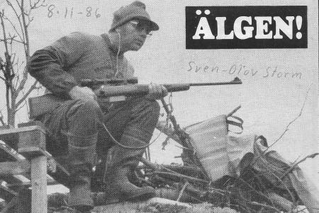 Sven-Olof Storm sitter på pass under Karperöbornas älgjakt på "Seleende" 1986.