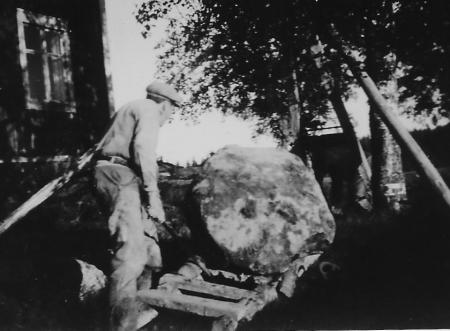 Elis Dahl röjer undan sten på "stejnslipon" någon gång efter kriget.