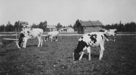 I bakgrunden Elis och Agnes Dahls hus och lillstuga.