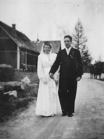 Karl Gösta Wiklund (1920-2009) från Gerby gifter sig 1944 med Olida Emilia Ingeborg* Hjerpe (1920-2007).