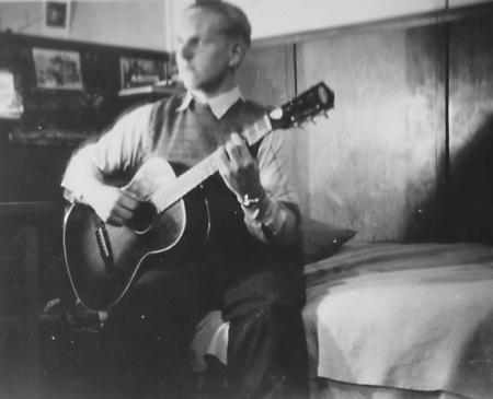 Almer Lithén med gitarren i British Columbia i Kanada. Året torde vara 1952.