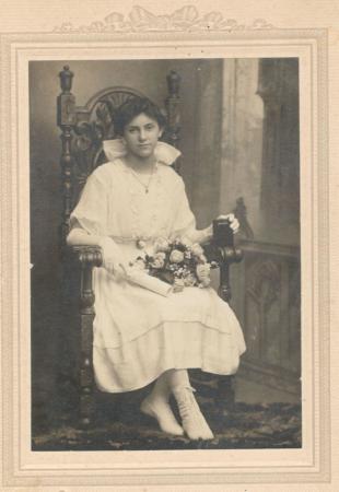 gifte sig 1934 med Charles Sundheim (1901-1971). Fotot taget i Bronx i New York där hon bodde hela sitt liv. Ingrid var dotter till Johanna Bäck (1877 -1943) gift med Herman Syring (1878 - 1930) från Gerby. Hon var kusin med Adamas Aina.