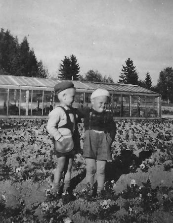 Bernt Mikael* Ström (1950-) och Björn-Erik Lithén (1951-) i trädgården.