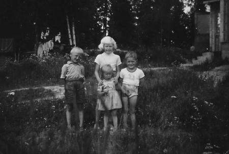 Mikael (1950-), Viola (1946-) och Stina (1954-) Ström, samt grannpojken Björn-Erik Lithén (1951-).