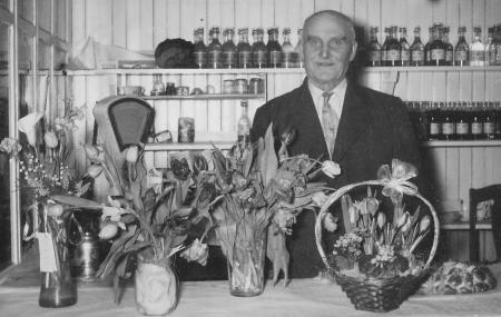 Karl Herman Hägglund i sin fiskaffär i saluhallen i Vasa. Fotot från hans 60-årsdag.