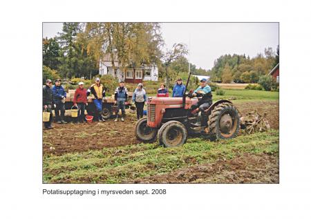 Potatisupptagnin i Myrsveden 2008. På traktorn Leo Hall.