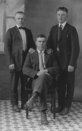 Hugo Arvid Ström "Mickas Hugo" (1898-1947), Eskil Evert Dahl (1898-1980), mannen till höger är okänd. Bilden tagen i Kanada