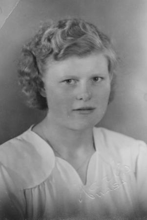 Skriftskolkort, Rut Gunnel* Linnéa Lithén (1935-2025), gift Björnström. Enligt Gunnel är hennes födelsedatum 4.1.1935, inte 7.1.1935 som det står i kyrkboken.
